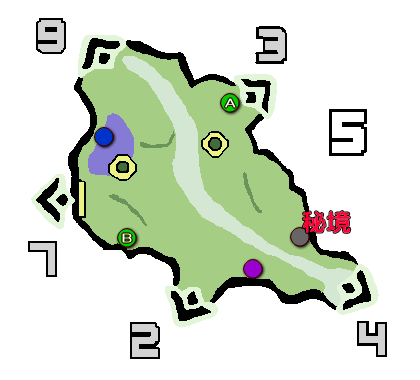 ●=草、●=キノコ、●=虫、●=蜂、●=実、●=石、●=鉱石、●=卵、○=骨、●=釣り